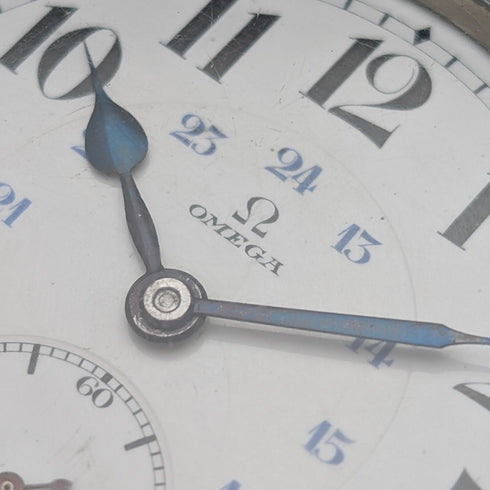 Antique Omega pocket watch from around 1920, diameter 53mm, railroad watch, alloy case, in good working order