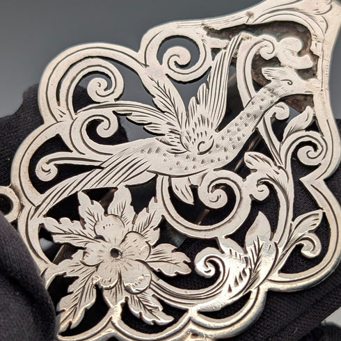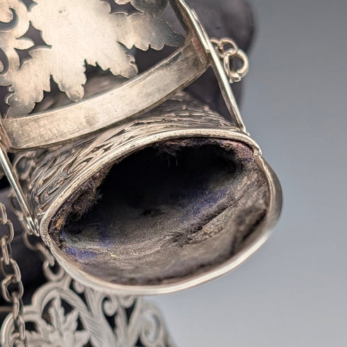 - There is some wear and tear and small scratches due to age, but no noticeable scratches or dents. - The case and clip are stamped with the sterling silver hallmark of the UK Assay Office. - The lining has some wear and dirt. - The lid opens and closes smoothly.