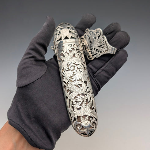 1897 British Antique Sterling Silver Chateau Lacquer Eyeglass Case, George Unite