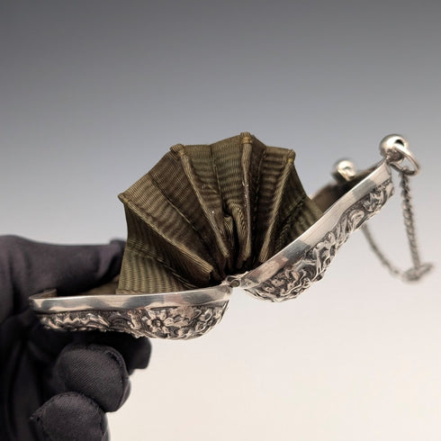 1898 British Antique Sterling Silver Coin Case with Chain by Henry Matthews