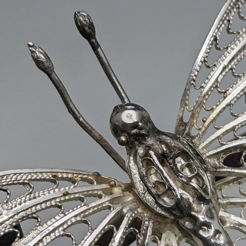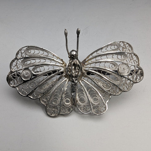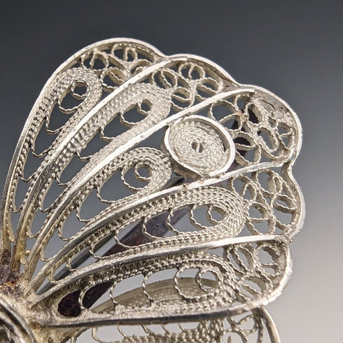 這是一種用細銀絲製成的蝴蝶形胸針,稱為“花絲”。