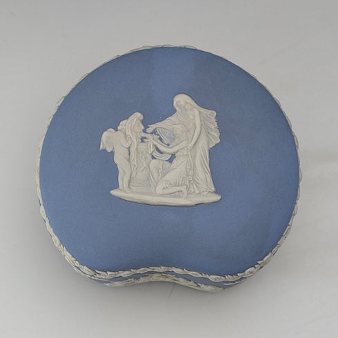 英國復古韋奇伍德碧玉豆形盒飾品淡藍色