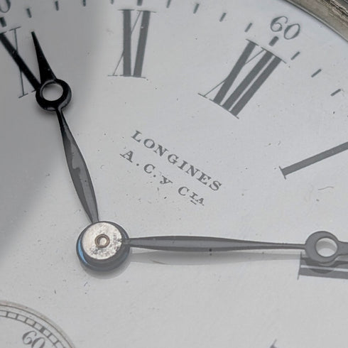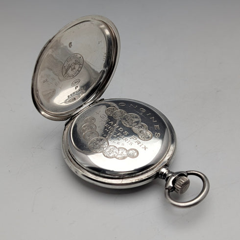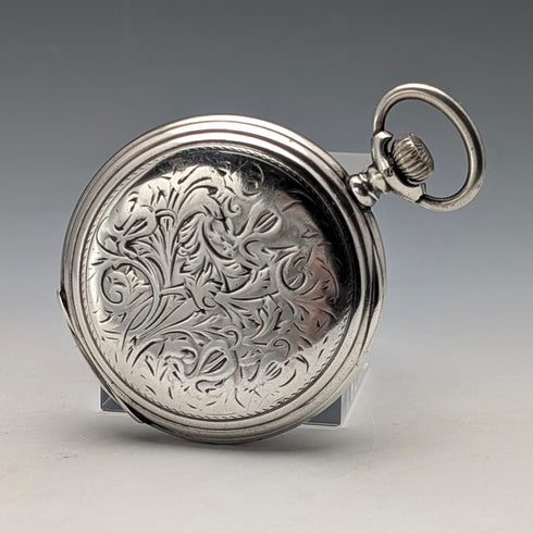 約 1908 年古董浪琴懷錶,帶捲軸雕刻,銀色側面獵人錶殼,工作狀態良好